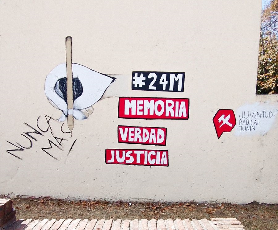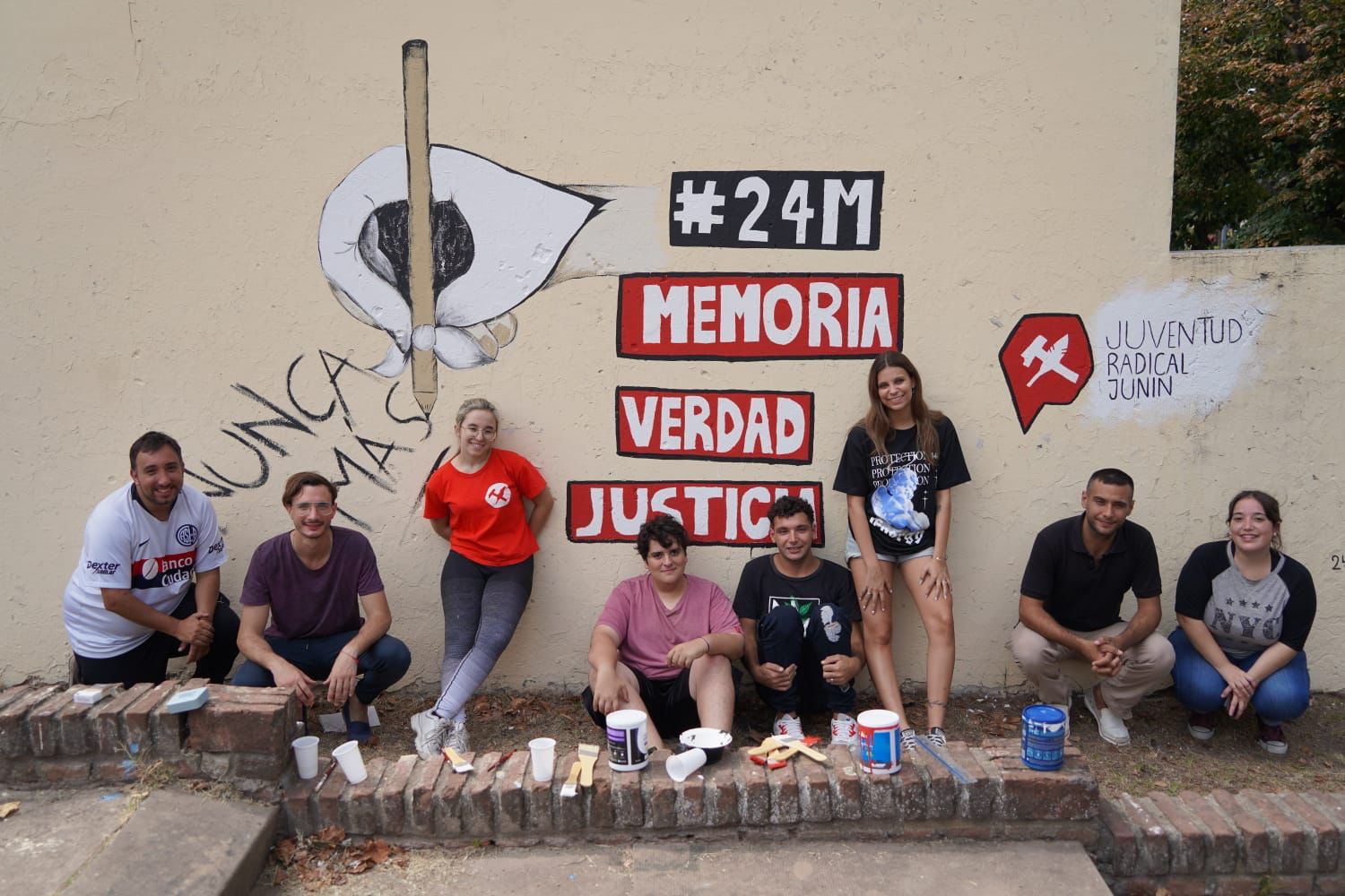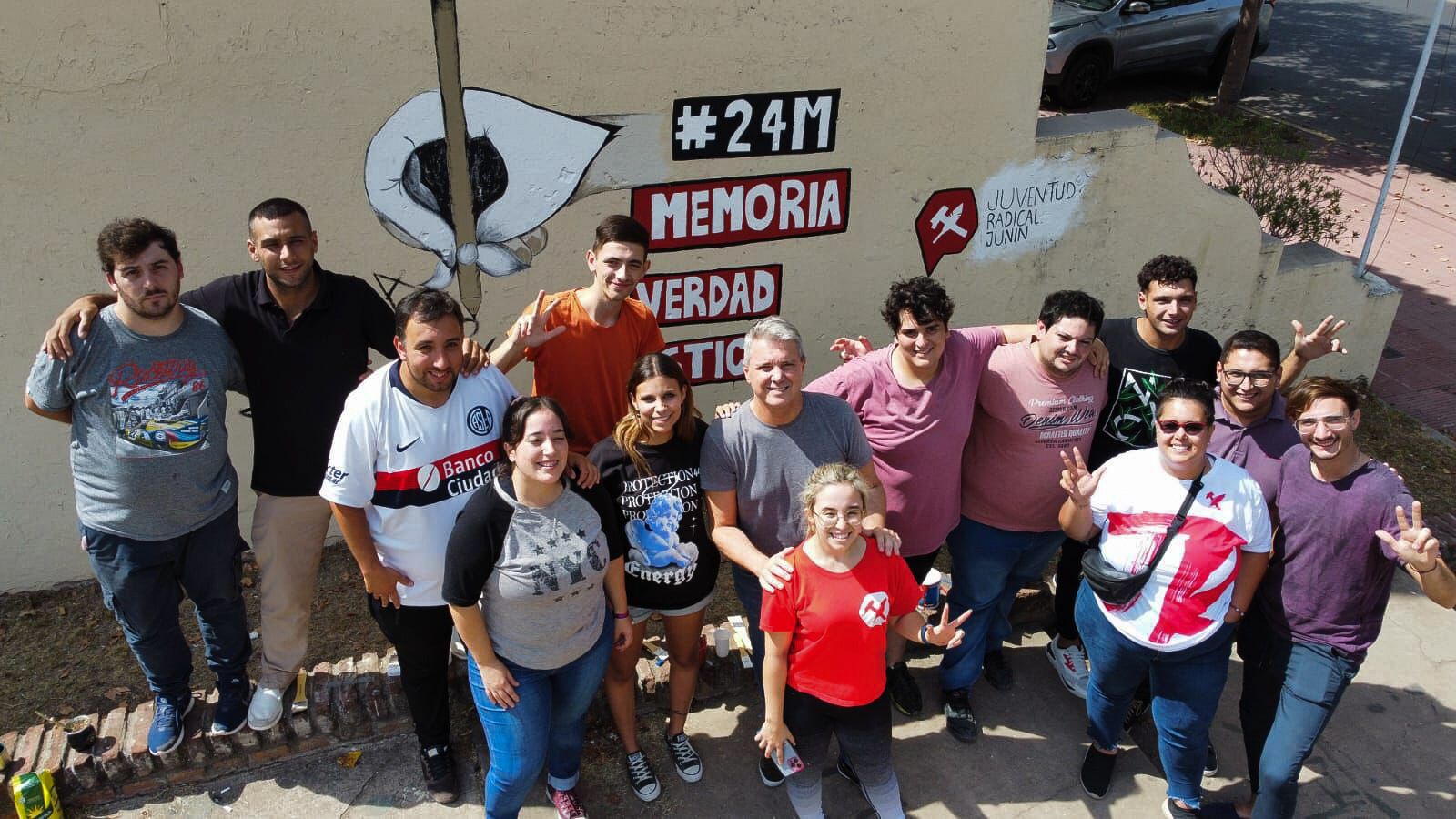 Como a largo y a lo ancho del país, se llevaron a cabo hoy distintos actos en relación al Día Nacional de la Memoria, la Verdad y la Justicia. En nuestra ciudad, la Juventud Radical Junín realizó un mural con la leyenda “24M Memoria, Verdad y Justicia”. Varios jóvenes se hicieron presentes para colaborar en este sentido homenaje a todos los desaparecidos y a quienes fueron víctimas de la dictadura militar. También se hizo presente el precandidato a intendente de la UCR, José Molinari.