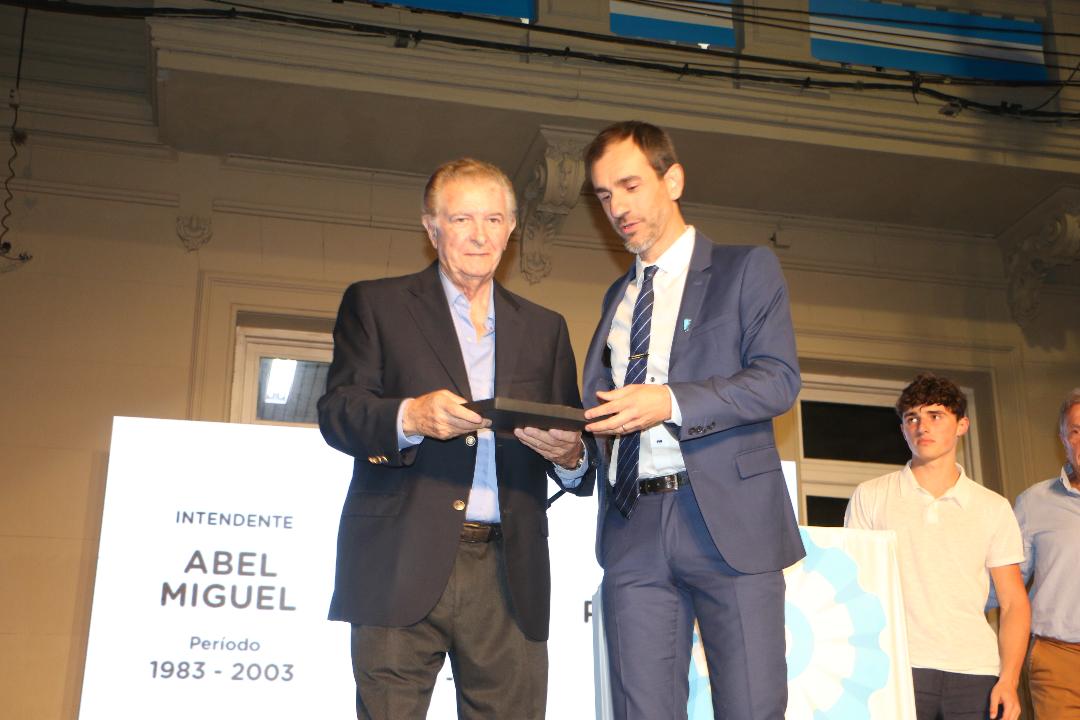 Abel Miguel, primer intendente municipal tras el retorno de la Democracia, desde 1983 hasta el año 2003, recibió una placa de manos del Intendente Pablo Petrecca y se dirigió a los presentes expresando: «Agradezco al intendente Petrecca este reconocimiento, que recuerda en nuestro caso, haber sido los que tuvimos la responsabilidad y privilegio, de ser el primer intendente tras el regreso de la Democracia, este 10 de diciembre hace 40 años de ese histórico, de la mano de un gran líder y presidente como fue Raúl Alfonsín».