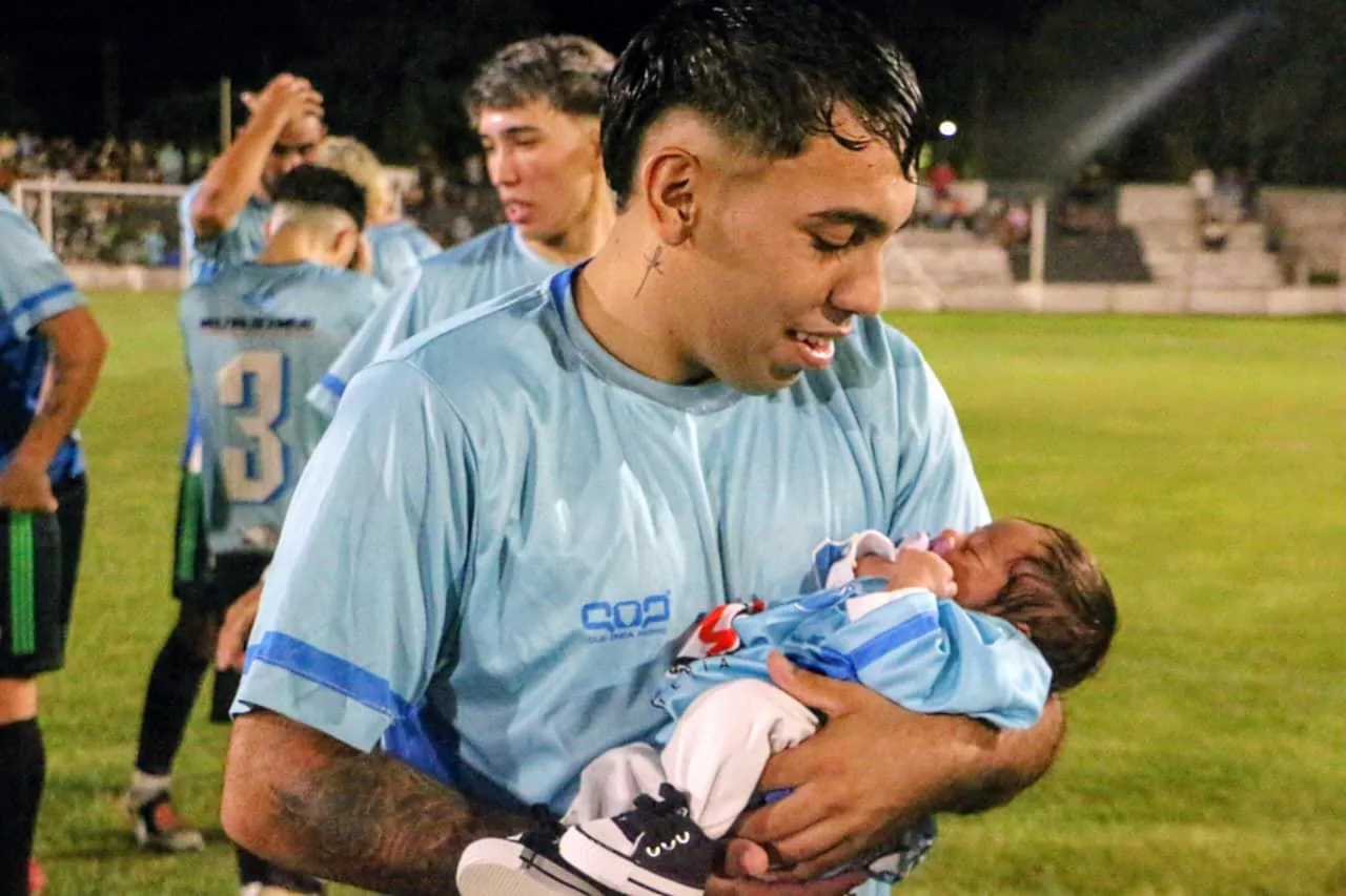 “Es mi hija, Helena, que en unos días va a cumplir un mes, el 19 de febrero. Estábamos esperando el partido justo para entrar con ella, yo venía con un tema de una lesión y no me podía recuperar así que no estaba jugando por eso es que estábamos esperando el partido indicado”, relata con una voz que mezcla el alivio con la ternura. Al preguntarle qué sintió en ese túnel antes de pisar el césped con ella, no oculta su sensibilidad: “Realmente fue una alegría, hasta casi me pongo a llorar, encima que soy medio sensible”.