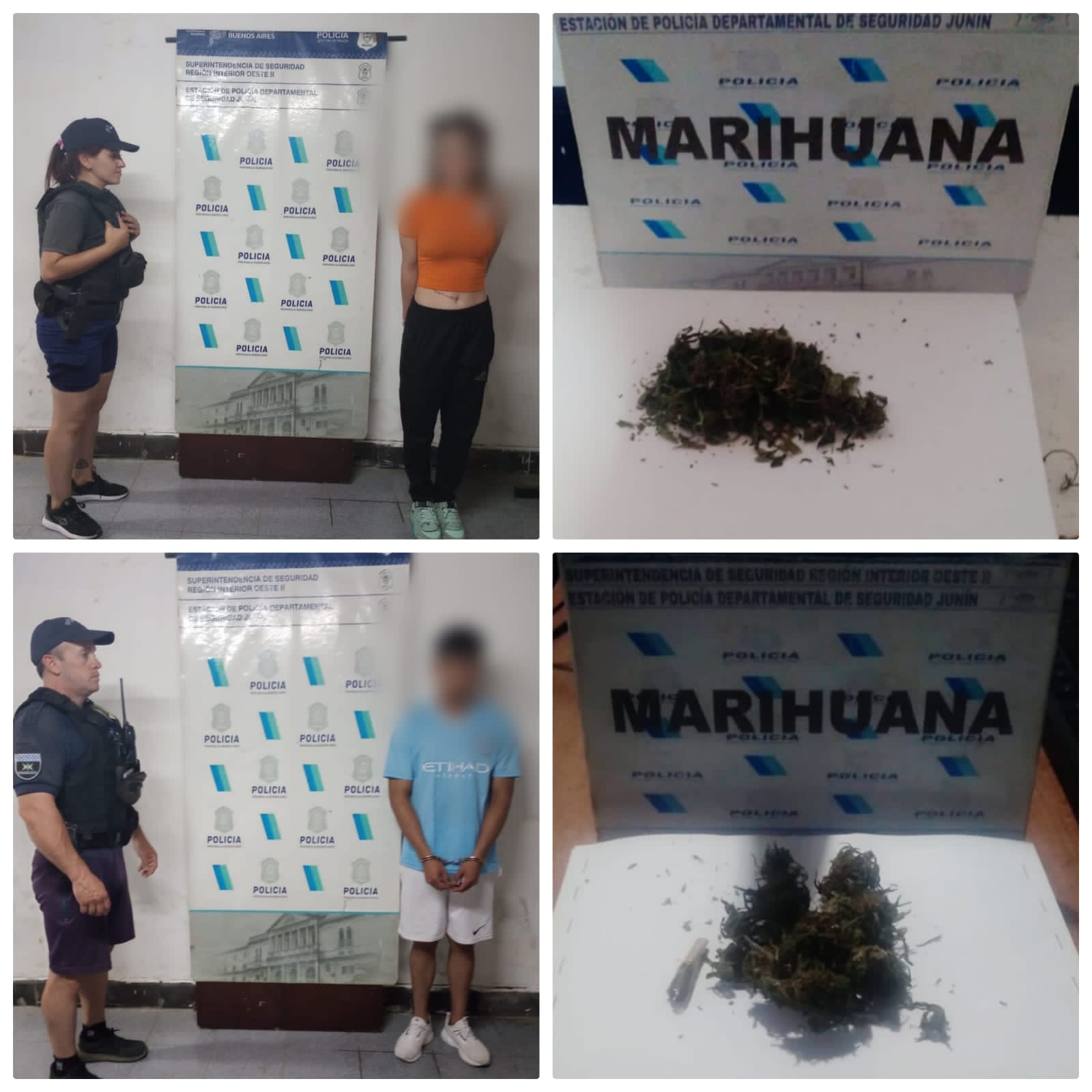 Finalmente, efectivos del Cuerpo de Bici Policías procedieron en la terminal de ómnibus de la ciudad a la identificación de un hombre de 22 años de edad y de una mujer de 21 años de edad, a quienes se les secuestró en su poder dos envoltorios de nylon con marihuana.