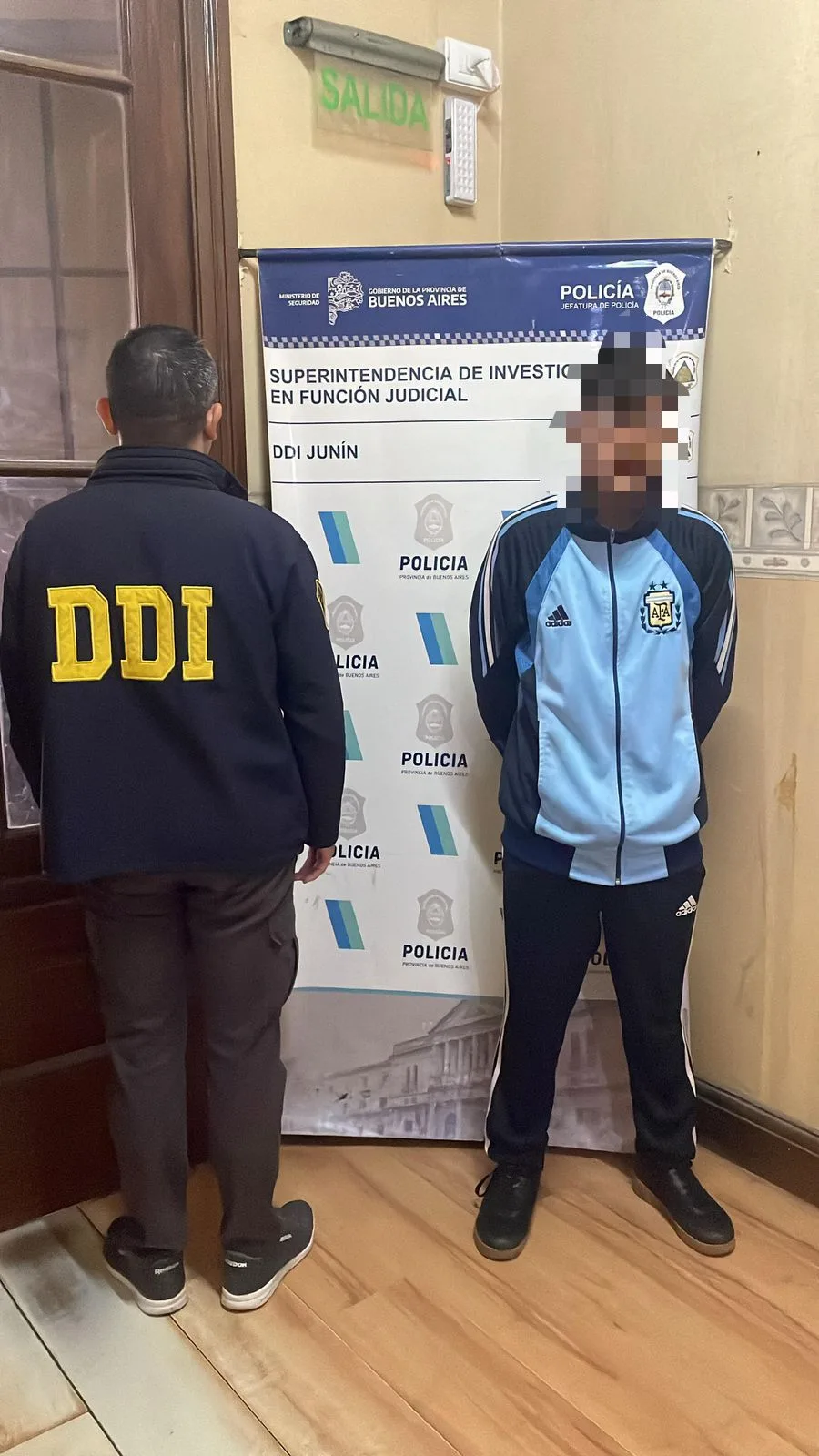 Tras tareas investigativas y tareas de campo de forma encubierta, se logó establecer el lugar de ocultamiento del agresor, procediéndose a la inmediata detención del mismo, según lo dispuesto por el Juzgado Correccional Nro. 3 del Departamento Judicial Junín.