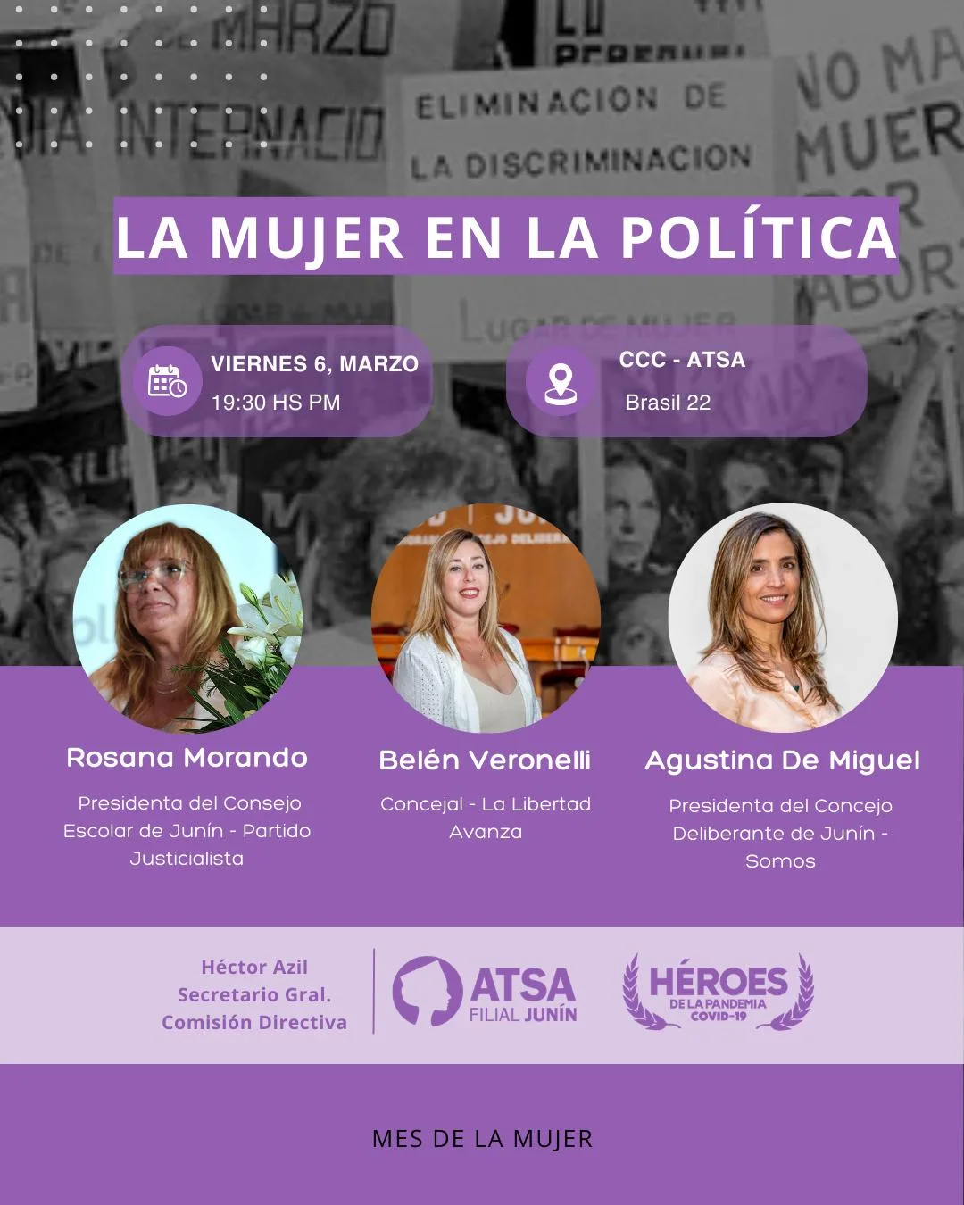 En el marco del Mes de la Mujer, ATSA Junín llevará adelante un Ciclo de Charlas pensado como un espacio de encuentro, reflexión y diálogo abierto a toda la comunidad. La propuesta busca visibilizar el rol de las mujeres en distintos ámbitos de la sociedad y generar instancias de intercambio desde miradas diversas.