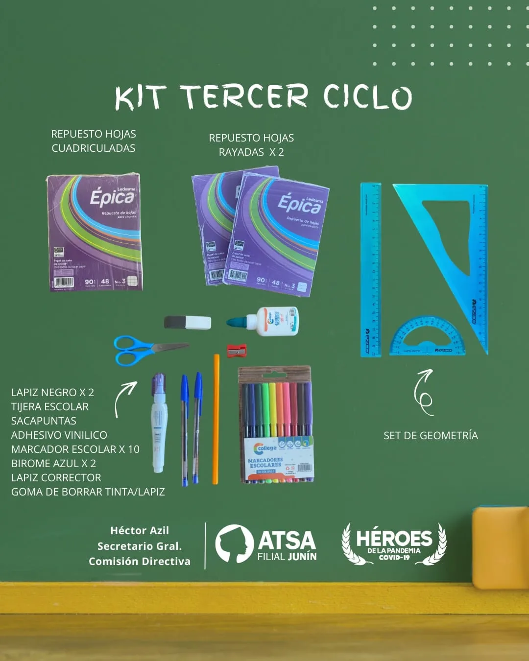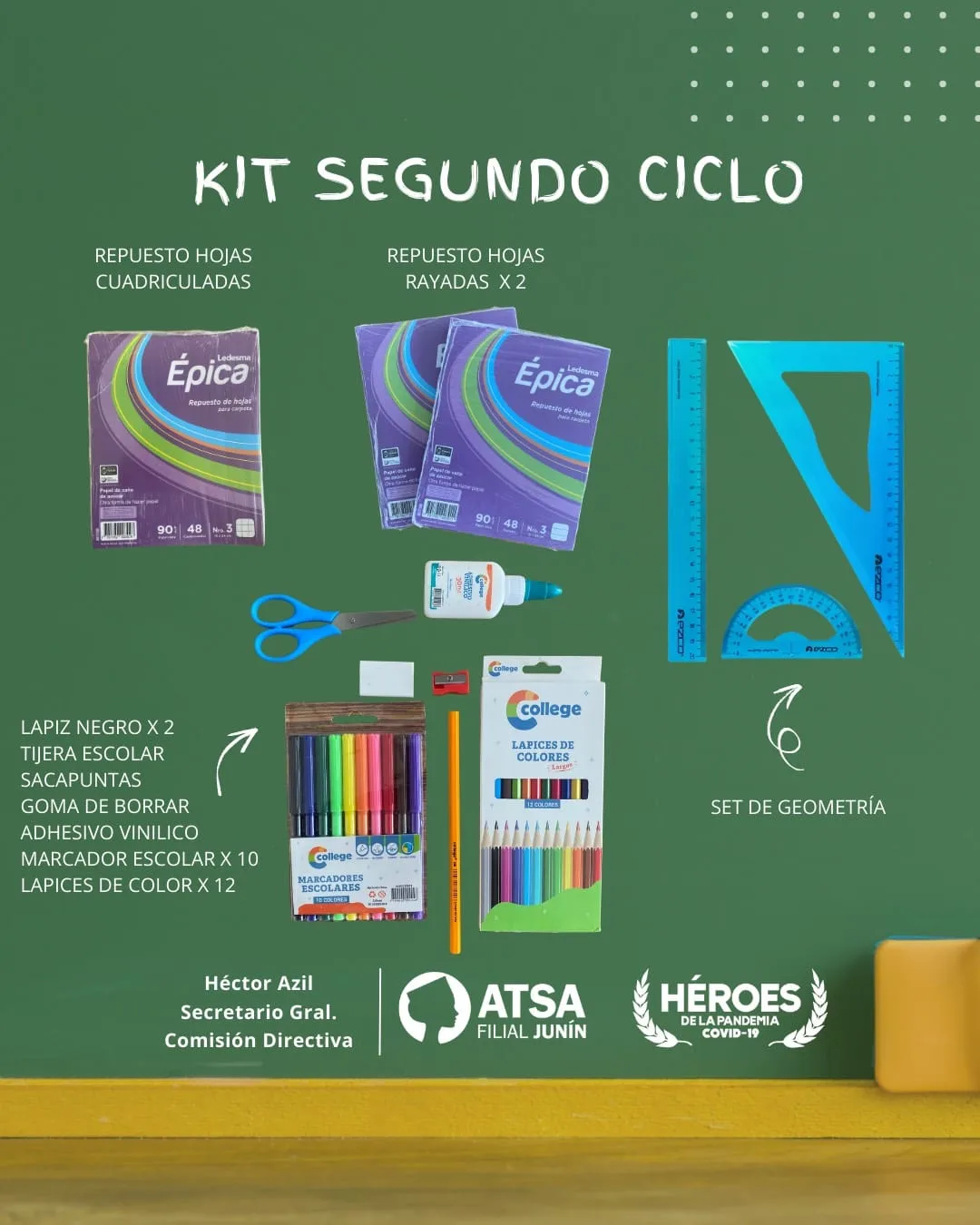 Pensando en cada etapa escolar, se diseñaron cuatro kits diferenciados, adaptados a la edad y a las necesidades de niños y niñas, con materiales seleccionados para acompañar el aprendizaje en cada nivel. Los kits estarán disponibles próximamente en ATSA; cada opción puede conocerse en detalle recorriendo el carrusel informativo.