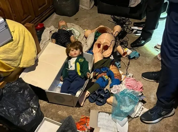 En la redada llevada a cabo por la Policía Bonaerense, en la que participaron efectivos de Interpol, hallaron una macabra de muñecos realistas, figuras de bebés en cunas y niños de dos o tres años, además de un manual que enseñaba explícitamente cómo atacar a menores, y una decena de juguetes sexuales.