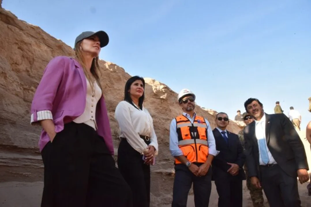 La ministra secretaria general de Gobierno, Mara Sedini, constató el avance de este “Escudo Fronterizo” que construyen el Ejército y el Ministerio de Obras Públicas, una de las principales promesas de campaña del actual presidente José Antonio Kast.