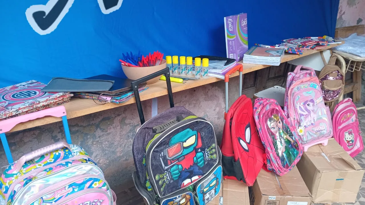 Este tipo de actividades pretende llevar alivio a esta necesidad, facilitar el acceso a mochilas, carpetas N° 3 y 5, cartucheras completas con cajas de lápices, fibras, reglas, escuadras, pegamento adhesivo, mapas, hojas rayadas y cuadriculadas, biromes de ambos colores, cuadernos N° 5 espiralados, un kit completo que llevará alivio a más de 120 niños-jóvenes adolescentes.