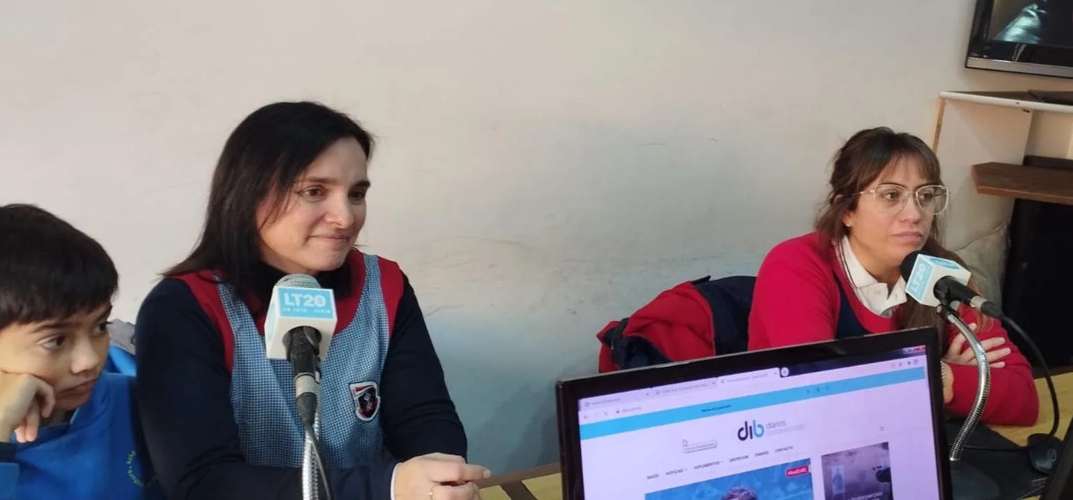 Silvia Giménez, directora del nivel Inicial; Bárbara Lucci, vicedirectora del nivel Primario y los alumnos de 6º año del Secundario, Mora y Benjamín, fueron los portavoces en este nuevo aniversario y contaron ante los micrófonos de LT 20 Radio Junín cómo es el día a día en el Colegio.