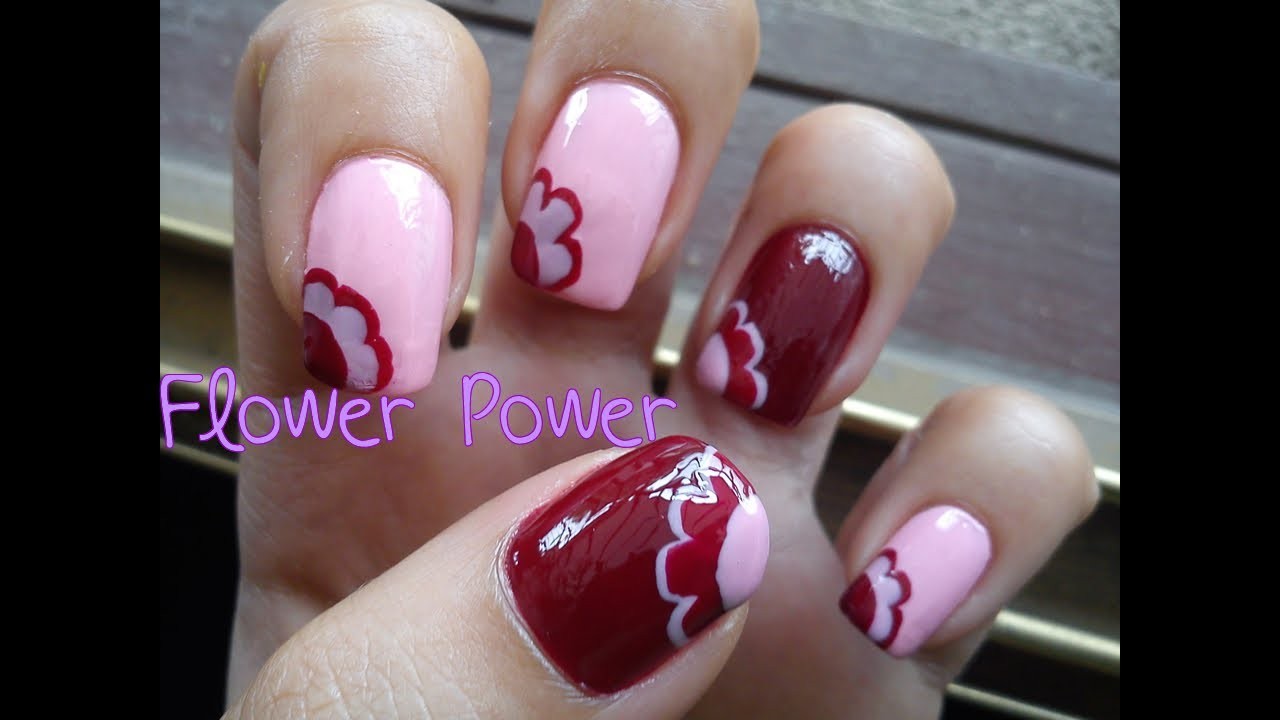 Y qué tal unas flores que dividen en dos tonos las uñas. Quedan divinas.