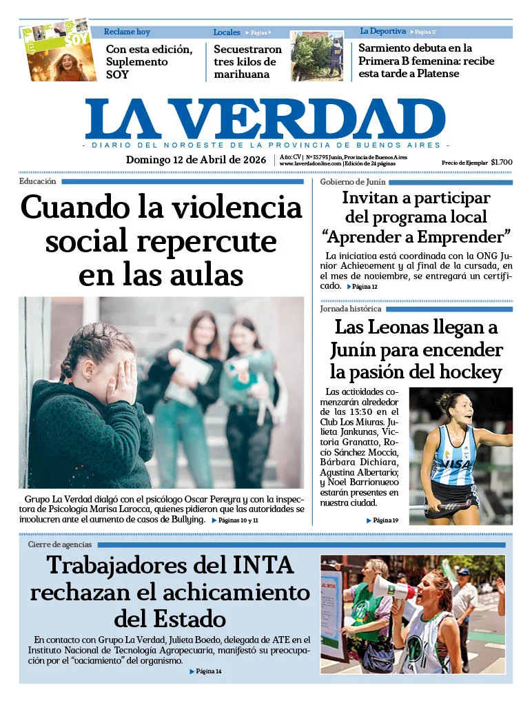 Diario La Verdad | Roque Sáenz Peña 167 Junín, Bs. As. Argentina | Tel: 54-236-4511559 © 2025 Registro de Propiedad Intelectual Nº 60606230 Edición Nº 2955. Director:​ Cdor. Fernando Ratto | Propietario:​ Arzobispado de Mercedes - Luján.