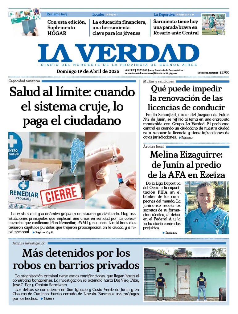 Diario La Verdad | Roque Sáenz Peña 167 Junín, Bs. As. Argentina | Tel: 54-236-4511559 © 2025 Registro de Propiedad Intelectual Nº 60606230 Edición Nº 2955. Director: Cdor. Fernando Ratto | Propietario: Arzobispado de Mercedes - Luján.
