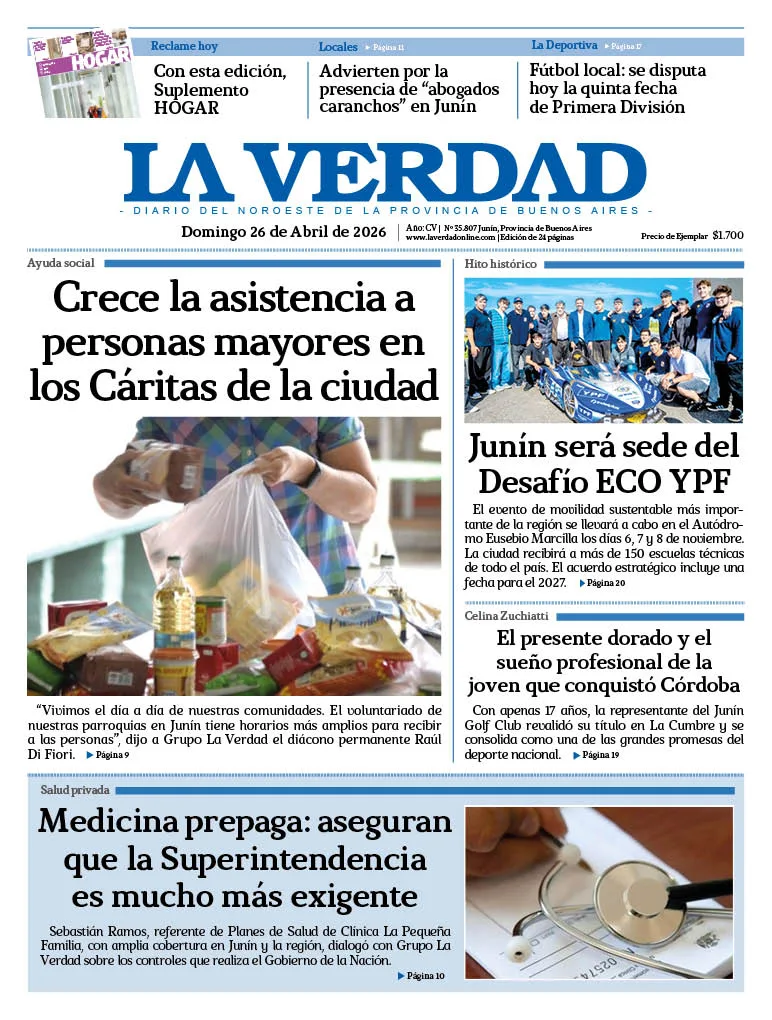 Diario La Verdad | Roque Sáenz Peña 167 Junín, Bs. As. Argentina | Tel: 54-236-4511559 © 2025 Registro de Propiedad Intelectual Nº 60606230 Edición Nº 2955. Director: Cdor. Fernando Ratto | Propietario: Arzobispado de Mercedes - Luján.