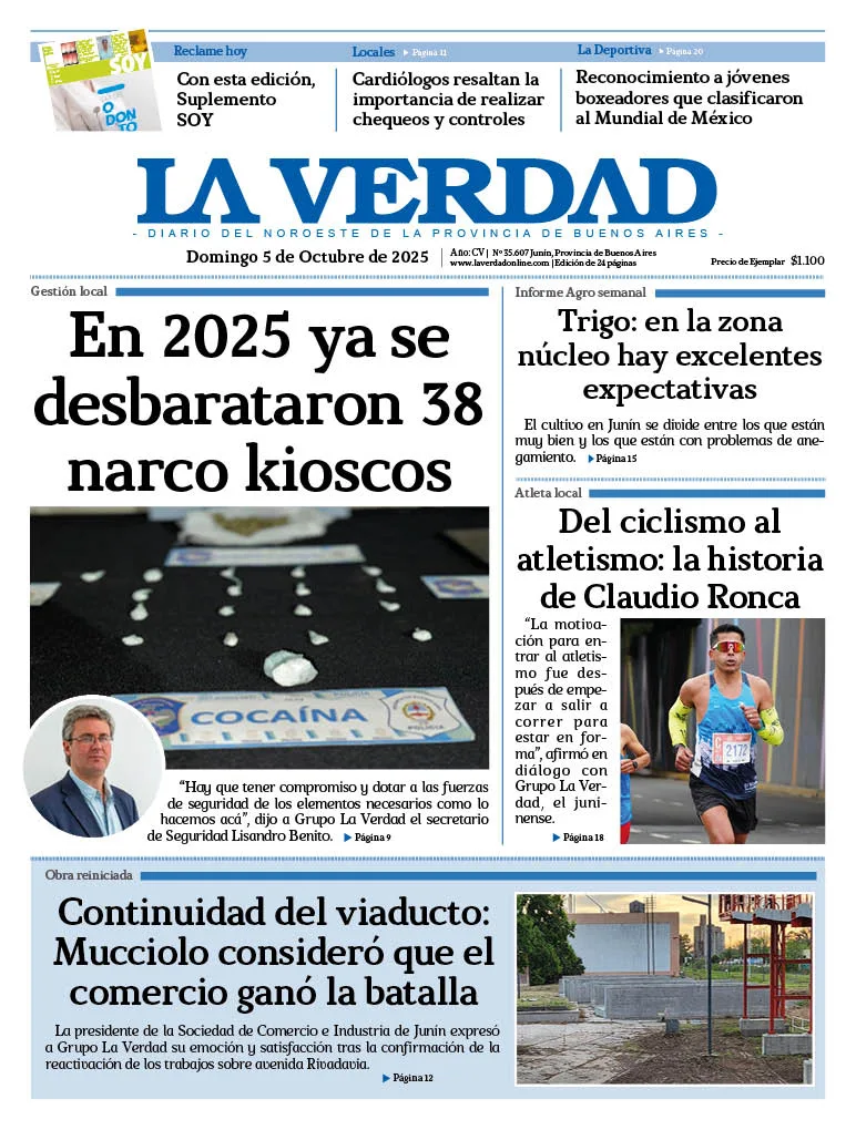 Diario La Verdad | Roque Sáenz Peña 167 Junín, Bs. As. Argentina | Tel: 54-236-4511559 © 2025 Registro de Propiedad Intelectual Nº 60606230 Edición Nº 2955. Director:​ Cdor. Fernando Ratto | Propietario:​ Arzobispado de Mercedes - Luján.
