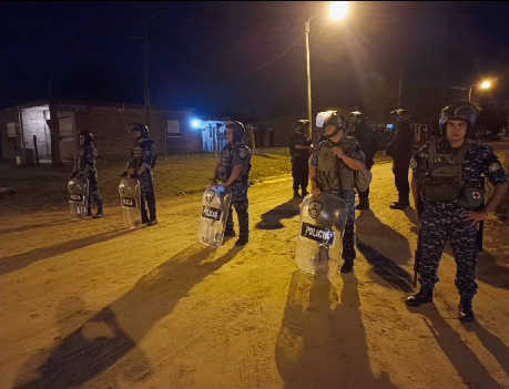 Según trascendió, se realizaron seis allanamientos en el barrio Almirante Brown, cuatro de los cuales dieron resultado negativo, pero en una vivienda ubicada sobre calle Bentancourt se produjo la detención de dos hombres de 30 y 35 años de edad, sin que pudiera concretarse la detención del tercer sujeto involucrado en la pelea.