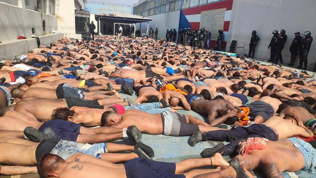 Lasso acompañó el mensaje con impactantes fotos del operativo de traslado, en las que se veían cientos de presos acostados boca abajo en el suelo y armas incautadas.