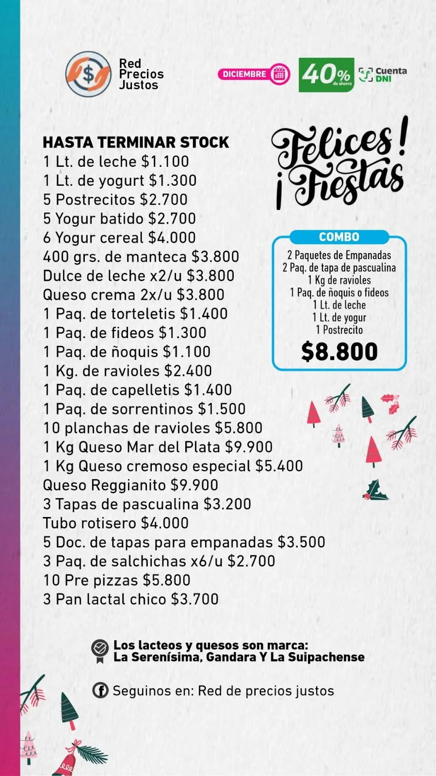 El camión de pastas y lácteos estará mañana sábado nuevamente en Junín, en esta ocasión desde las 10, en la sociedad de fomento del barrio Municipal, Pastor Bauman al 1.500. Durante la jornada se comercializarán productos frescos como leche, yogur, fideos, sorrentinos, ravioles, quesos, tapas de empanadas, pre pizzas, pan lactal, entre otros. También habrá diferentes combos.