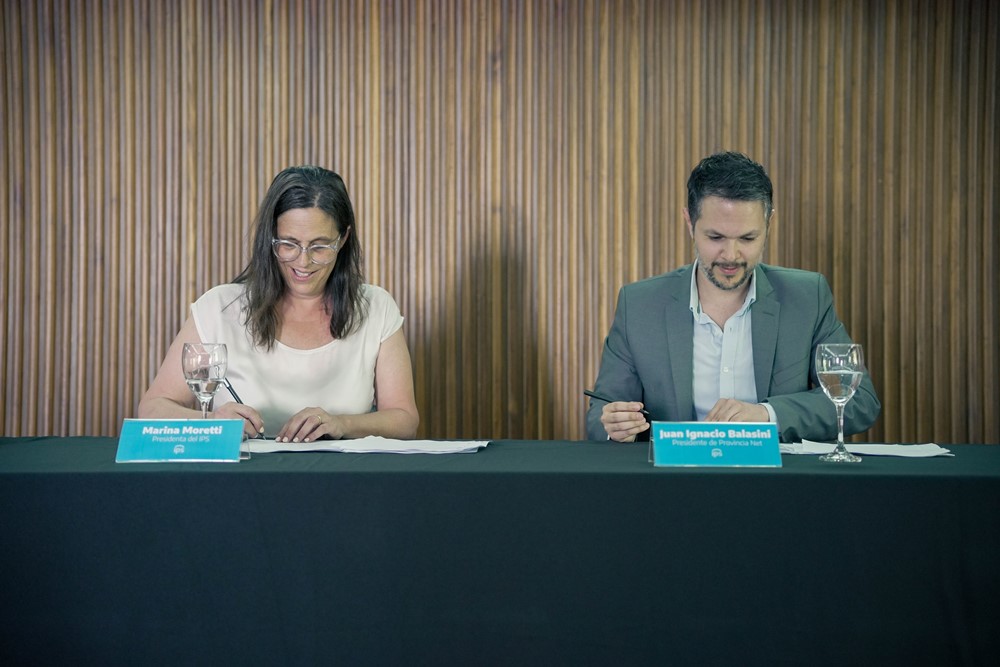 La presidenta del Instituto de Previsión Social de la provincia, Marina Moretti y el presidente de Provincia Net, Juan Ignacio Balasini, suscribieron un Convenio de Asistencia Técnica para la implementación de un sistema de digitalización de los expedientes físicos y documentos del organismo previsional.