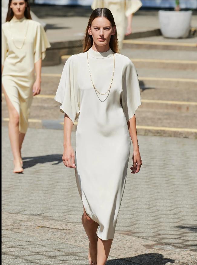Con respecto a texturas podemos encontrar materiales como muselina, sedas satinadas, gasas, crep, gasas de bambula, sedas frías, satén, que es lo último en texturas para este verano y lo veremos en túnicas cortas y largas, vestidos, soleros, ambos en pantalón recto y blusón tanto lisos como estampados.