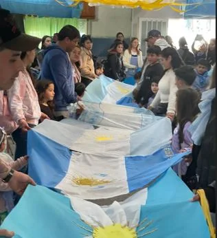 Seguidamente, Cieri afirmó que “este año decidimos hacer algo diferente por el Día de la Bandera, nosotros como docentes somos guardianes de nuestra historia, la cual tenemos que conservar y proteger y, fundamentalmente, transmitir de generación en generación”. Luego, mencionó: “Surgió como un proyecto la idea de abrazar toda la cuadra de nuestra institución y poner en manifiesto las actividades que realizaron las familias”.