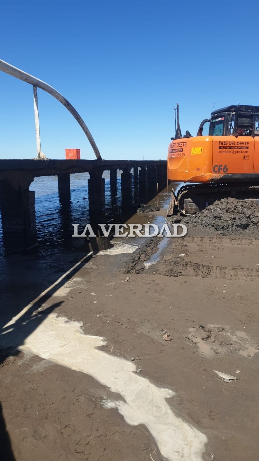 Desarmada ya la estructura, o vela, que se encontraba sobre el mismo, las máquinas especiales ya comenzaron a trabajar dentro del agua para realizar los pilotes.