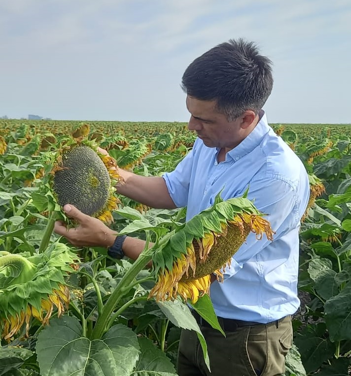 “Hace 25 años que no sembrábamos girasol en Teodelina porque la caña de la planta era alta y por estrés hídrico. Ahora tenemos el único lote con girasoles sembrado a mediados de noviembre a 376 km de la ciudad de Santa Fe. Esta es una siembra de primera, perteneciente a la campaña 2022/23, y se vio una buena emergencia de la semilla con buen comportamiento y estabilidad en la etapa de crecimiento y floración en este lote. Encontramos la oportunidad de realizar una estrategia de siembra con dos excelentes híbridos de NK y siempre acompañados por Ingeniero Nazareno Pompei, distribuidor en zona que nos acompaña desde la siembra, llegamos al período del llenado de grano y supervisamos este lote de girasol una vez por semana”, asegura el productor agropecuario Mauricio Torremorel.