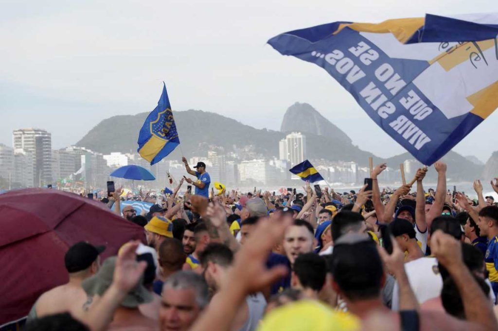 «Qué risa que me da, ahora estamos todos, que nos vengan a buscar» fue uno de los cantitos que más resonó en la playa de Copacabana haciendo referencia a los salvajes ataques que sufrieron en la jornada del jueves y a la llegada de una parte importante de “La 12”, la barra brava boquense.