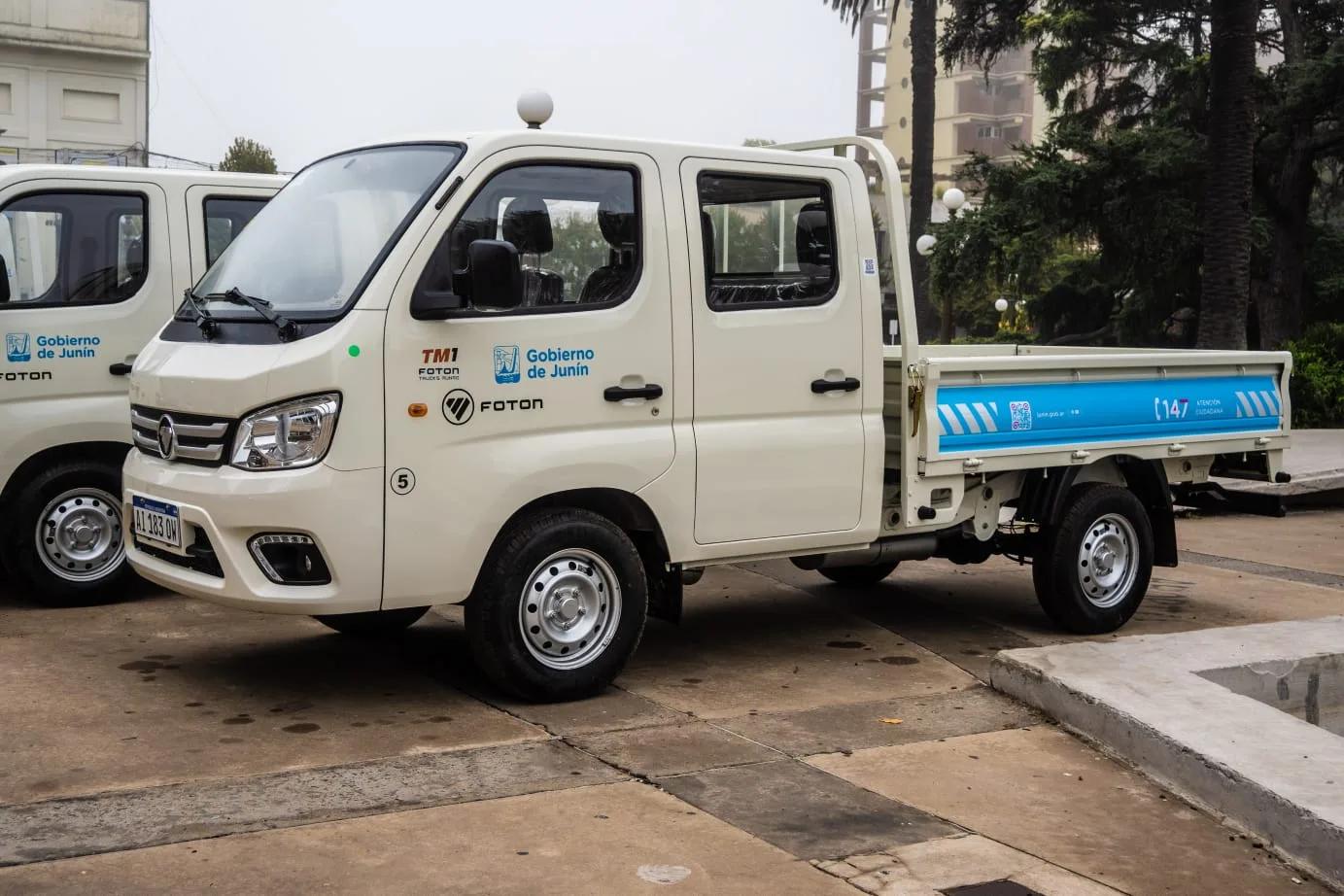 En esta oportunidad el Municipio adquirió cinco nuevos camiones livianos marca FOTON, provistos vía licitación por la empresa Corven y que serán destinados a las áreas de Tareas Varias, Espacios Verdes Urbanos, Mantenimiento General y Movilidad.