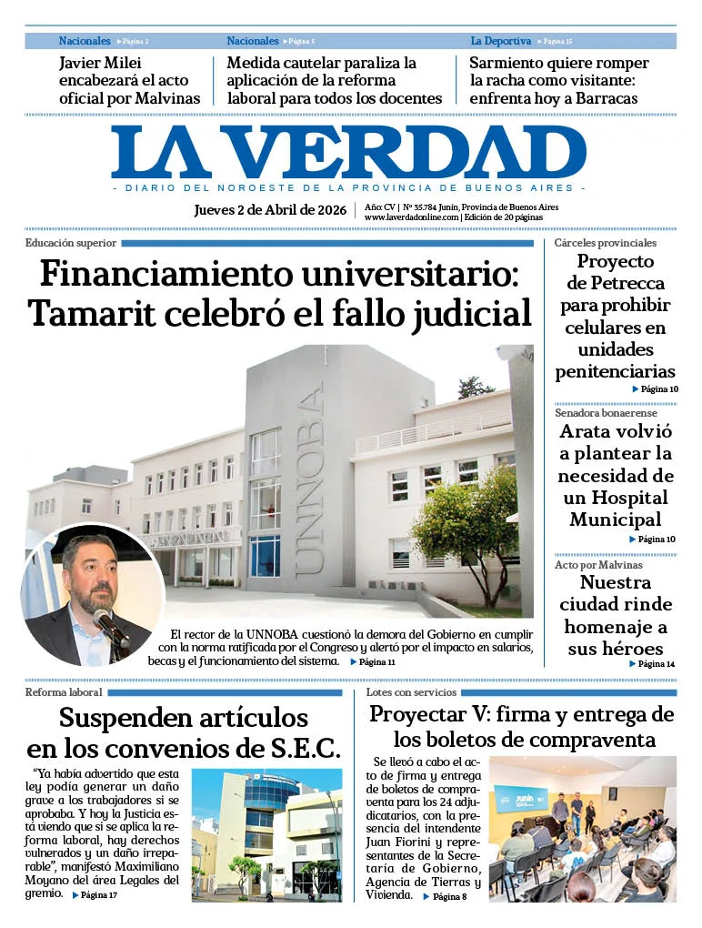 Diario La Verdad | Roque Sáenz Peña 167 Junín, Bs. As. Argentina | Tel: 54-236-4511559 © 2025 Registro de Propiedad Intelectual Nº 60606230 Edición Nº 2955. Director: Cdor. Fernando Ratto | Propietario: Arzobispado de Mercedes - Luján.