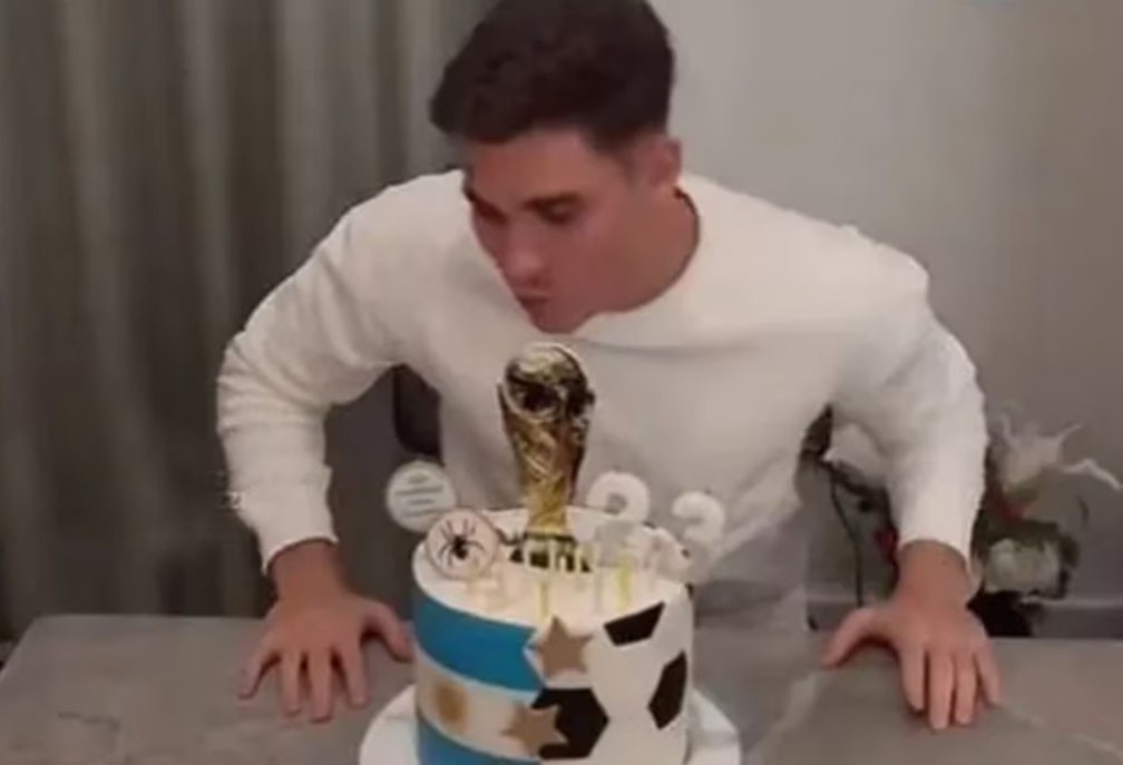 El que es campeón festeja como quiere. Y desde que la Selección le ganó la final a Francia en el Mundial de Qatar 2022, Julián Álvarez lo es. Este martes, «La araña» cumplió 23 años y sopló las velitas con una torta decorada con la temática mundialista.
