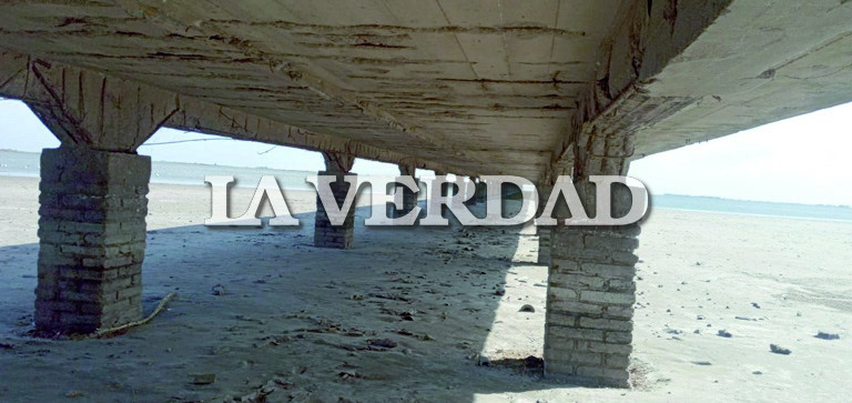 Por otra parte, en su momento se dio cuenta que en la cabecera del espigón, sobre el lado derecho, se había cortado la escalera de hormigón, quedando la misma hundida en el lecho del río y no se visualiza desde la superficie, en ese sector, los hierros que se unían desde la losa hacia la escalera quedaron a la vista, doblados y tocando el agua.