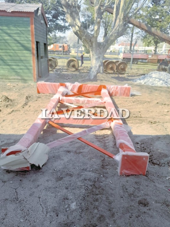 A fines del mes de agosto, y proveniente de la ciudad de San Luis, arribó a nuestra ciudad parte del material necesario para continuar armando la pasarela y el puente peatonal que pertenece a la obra que se está llevando a cabo con la próxima construcción del paso bajo a nivel de calle Rivadavia.