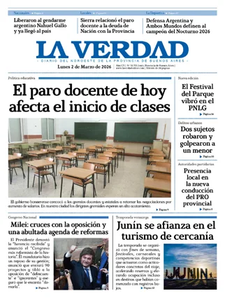 Diario La Verdad | Roque Sáenz Peña 167 Junín, Bs. As. Argentina | Tel: 54-236-4511559 © 2025 Registro de Propiedad Intelectual Nº 60606230 Edición Nº 2955. Director:​ Cdor. Fernando Ratto | Propietario:​ Arzobispado de Mercedes - Luján.