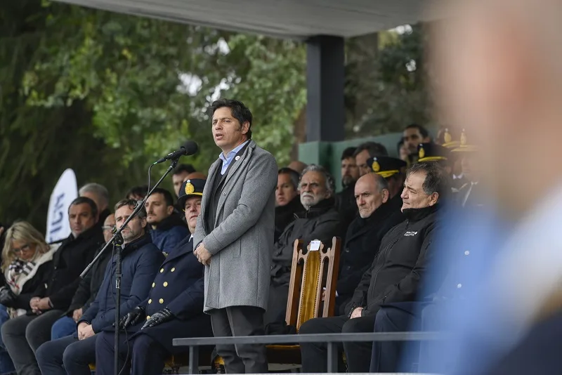 El gobernador de la provincia de Buenos Aires, Axel Kicillof, encabezó este lunes junto al ministro de Seguridad, Javier Alonso, el acto de jura de fidelidad a la bandera nacional de 2.736 cadetes que finalizarán este año el proceso de formación.