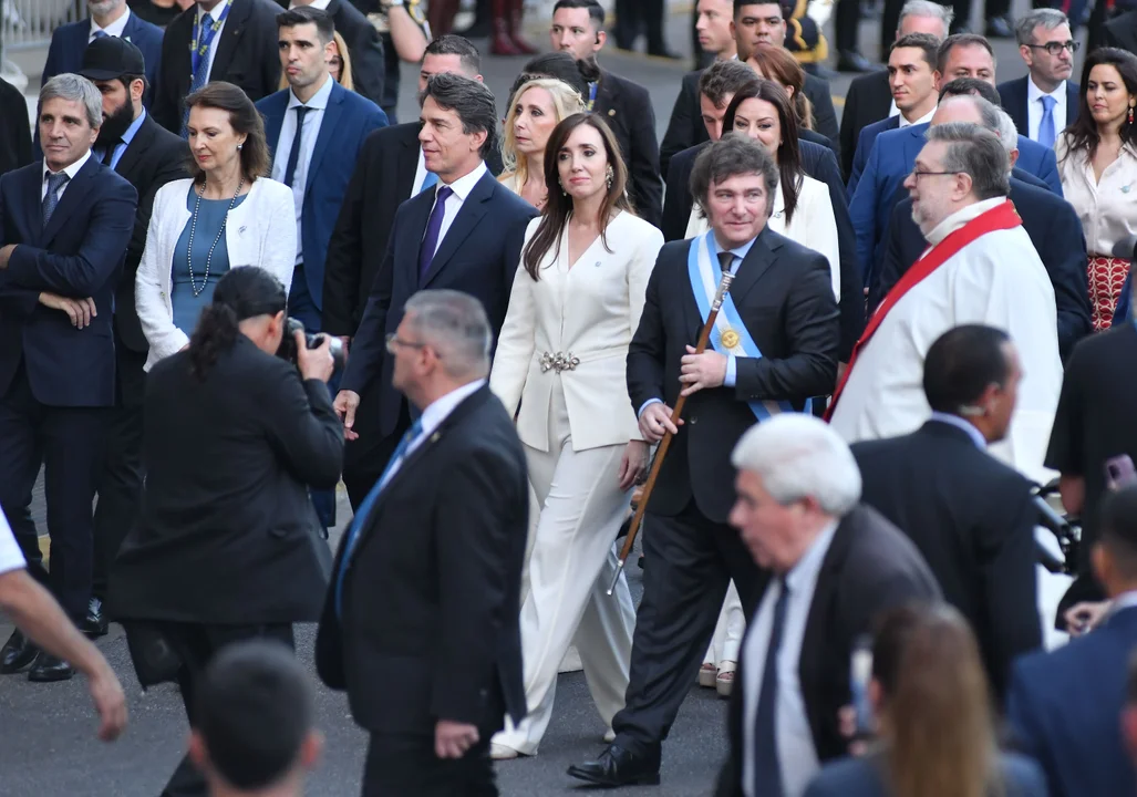 El presidente Javier Milei participó del tradicional Tedeum en la Catedral metropolitana junto a su vicepresidenta Victoria Villarruel y sus ministros.