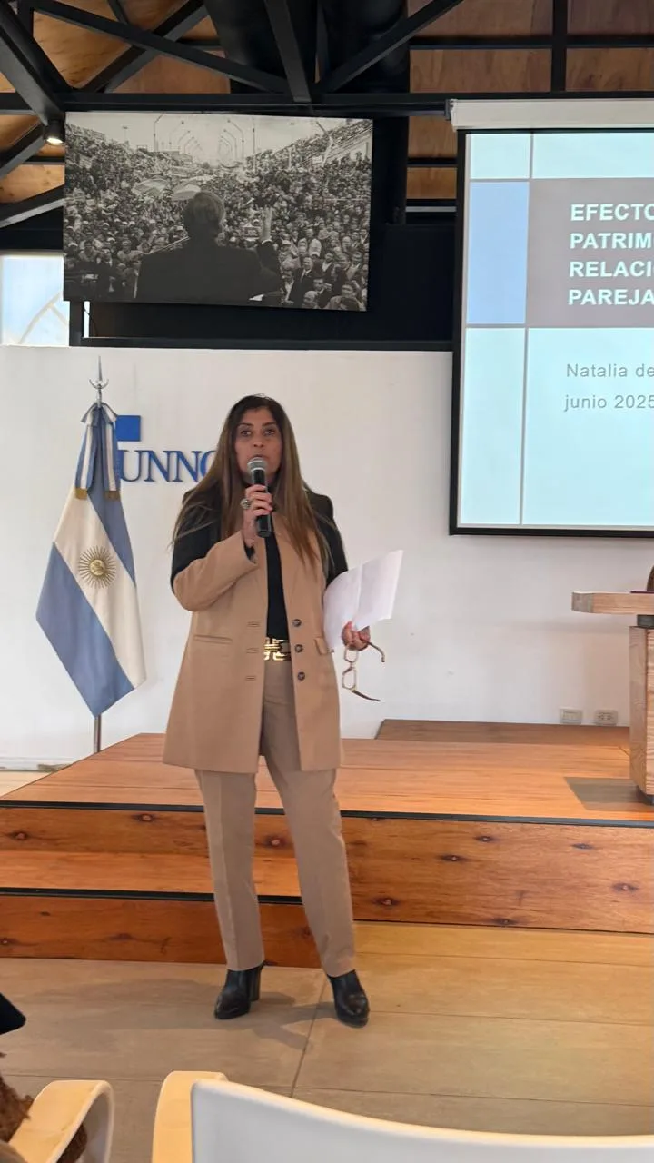 La jornada abordó la temática “Conflictos contemporáneos en materia de alimentos y efectos patrimoniales de las relaciones de pareja”, y estuvo a cargo de dos reconocidos especialistas en derecho de familia: la Dra. Natalia de La Torre y el Dr. Federico Notrica, quienes ofrecieron un análisis profundo sobre los desafíos actuales que enfrentan los operadores del derecho frente a nuevas configuraciones familiares, desigualdades económicas persistentes y los efectos de la reforma del Código Civil y Comercial.