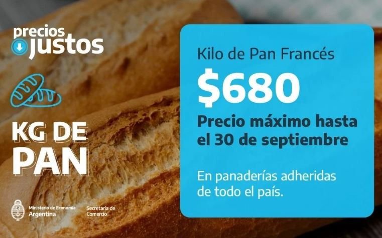 El secretario de Comercio, Matías Tombolini, se reunió con representantes de la Federación Argentina de la Industria del Pan y Afines (FAIPA) y la Cámara de Industriales Panaderos de la Ciudad Autónoma de Buenos Aires (CIPC) para firmar un acuerdo que establece un valor máximo para el kilo de pan francés de hasta $680 hasta el 30 de septiembre y de $715 para octubre en panaderías de todo el país.
