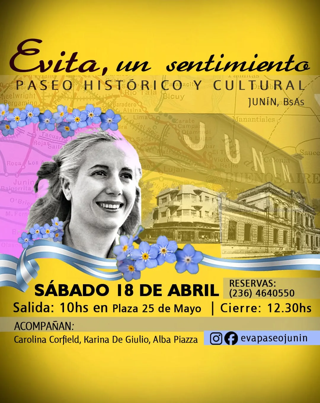 Es una invitación a conocer cada rincón de Junín, donde Eva, desde su infancia, vivió con su familia, dio sus primeros pasos en la escuela pública y desarrolló su vida social. Este paseo permite llegar también, al emblemático lugar donde, junto a Juan Domingo Perón, contrajo matrimonio.