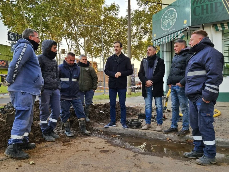 El intendente de Junín Pablo Petrecca visitó a un grupo de trabajadores de Obras Sanitarias que desde muy temprano se encontraban realizando tareas en Avenida Libertad y Roque Sáenz Peña. Todos los días, las distintas secciones de esta dirección recorren la ciudad llevando adelante la importante misión de lograr que los juninenses cuenten con un servicio esencial y de manera óptima, como son el de agua potable y cloacas.