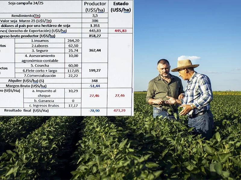 En este sentido, días pasado el Ing. Agr. Néstor Roulet mostró en su cuenta de X un cuadro en dónde se ve que un productor que alquila campo y siembra soja con rinde promedio de 3500 kg pierde 79 dólares por hectárea. En el caso del propietario, luego de pagar todos los tributos, le quedarían 185 dólares por hectárea.
