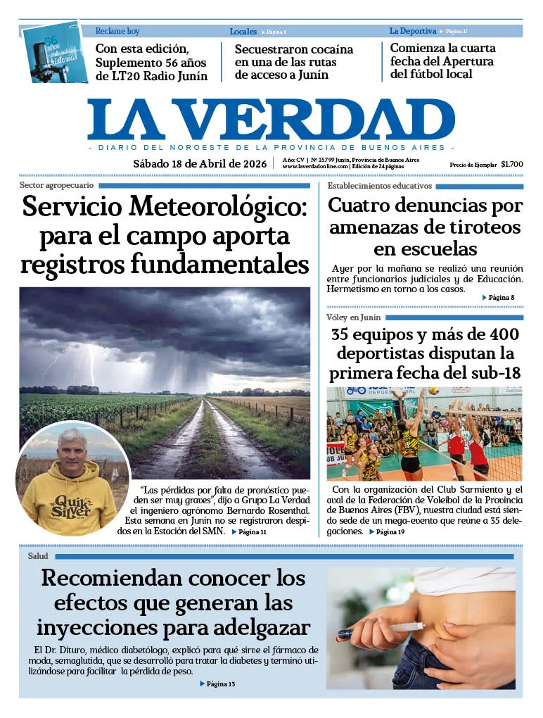 Diario La Verdad | Roque Sáenz Peña 167 Junín, Bs. As. Argentina | Tel: 54-236-4511559 © 2025 Registro de Propiedad Intelectual Nº 60606230 Edición Nº 2955. Director:​ Cdor. Fernando Ratto | Propietario:​ Arzobispado de Mercedes - Luján.
