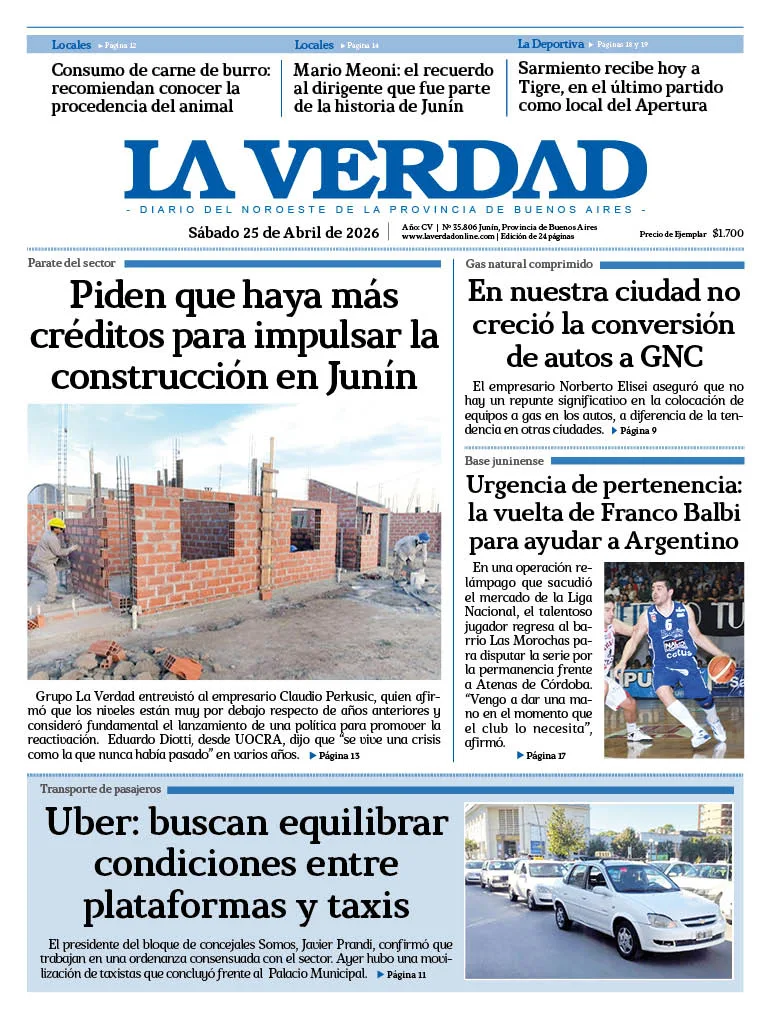 Diario La Verdad | Roque Sáenz Peña 167 Junín, Bs. As. Argentina | Tel: 54-236-4511559 © 2025 Registro de Propiedad Intelectual Nº 60606230 Edición Nº 2955. Director:​ Cdor. Fernando Ratto | Propietario:​ Arzobispado de Mercedes - Luján.
