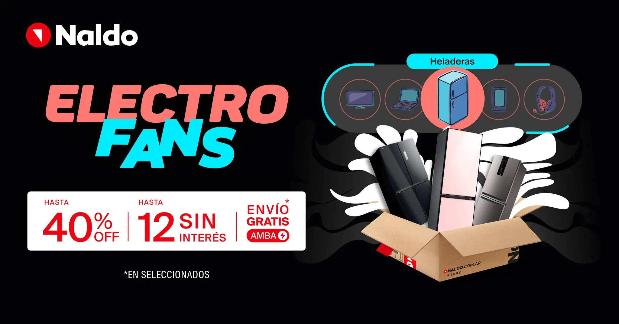 Electro Fans se extendió en Naldo ofreciendo oportunidades de compra tanto en tiendas físicas como en el canal online de la cadena. Además de estos beneficios, Naldo ofrece envío gratis a AMBA en seleccionados.