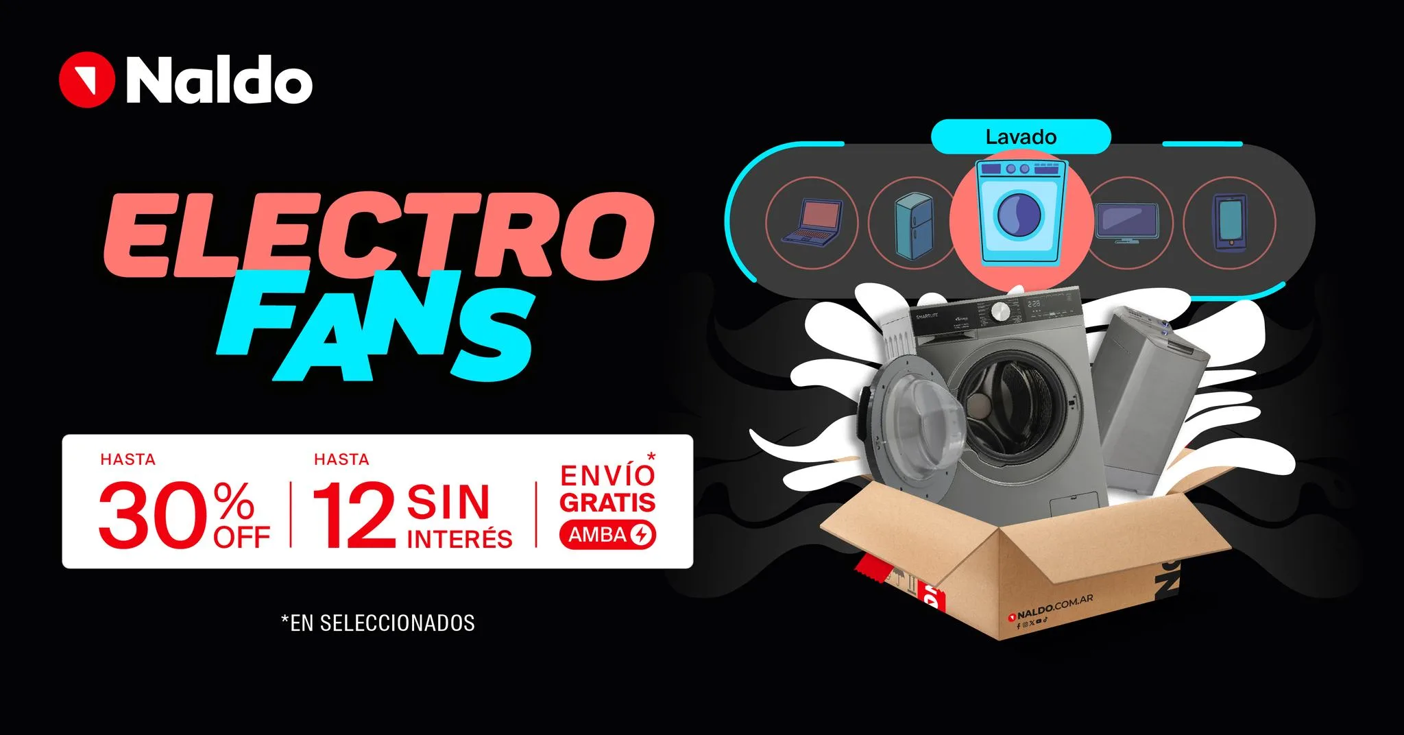 Hasta el 15 de marzo, continúa Electro Fans en Naldo, uno de los eventos comerciales más relevantes del sector de tecnología y electrodomésticos en Argentina. Hasta el domingo, la cadena ofrece promociones especiales con descuentos de hasta el 50% y financiación de hasta 12 cuotas sin interés, disponibles tanto en su red de sucursales como en su plataforma de e-commerce.
