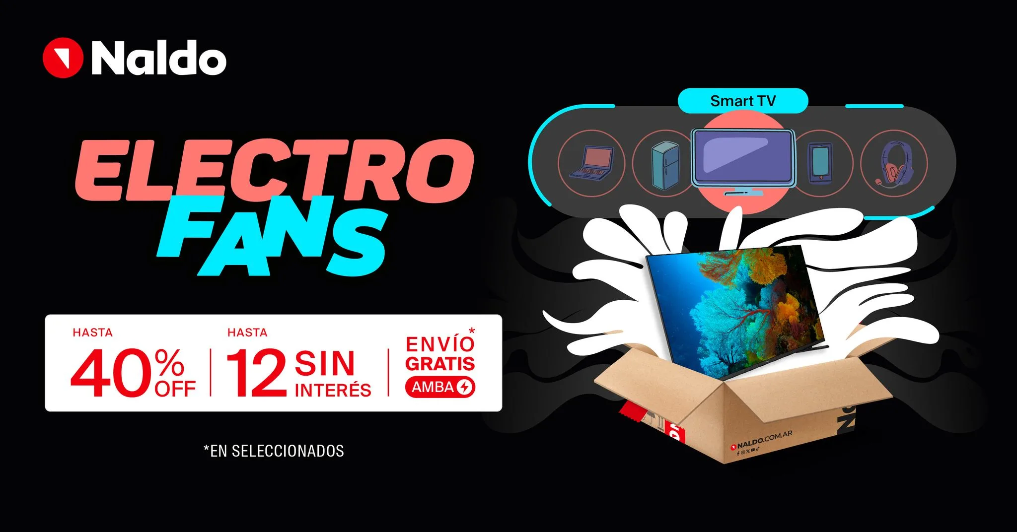 Hasta el domingo 15 de marzo, continúa Electro Fans en Naldo con descuentos que alcanzan el 50% y financiación de hasta 12 cuotas sin interés en productos seleccionados de múltiples categorías de tecnología y equipamiento para el hogar.