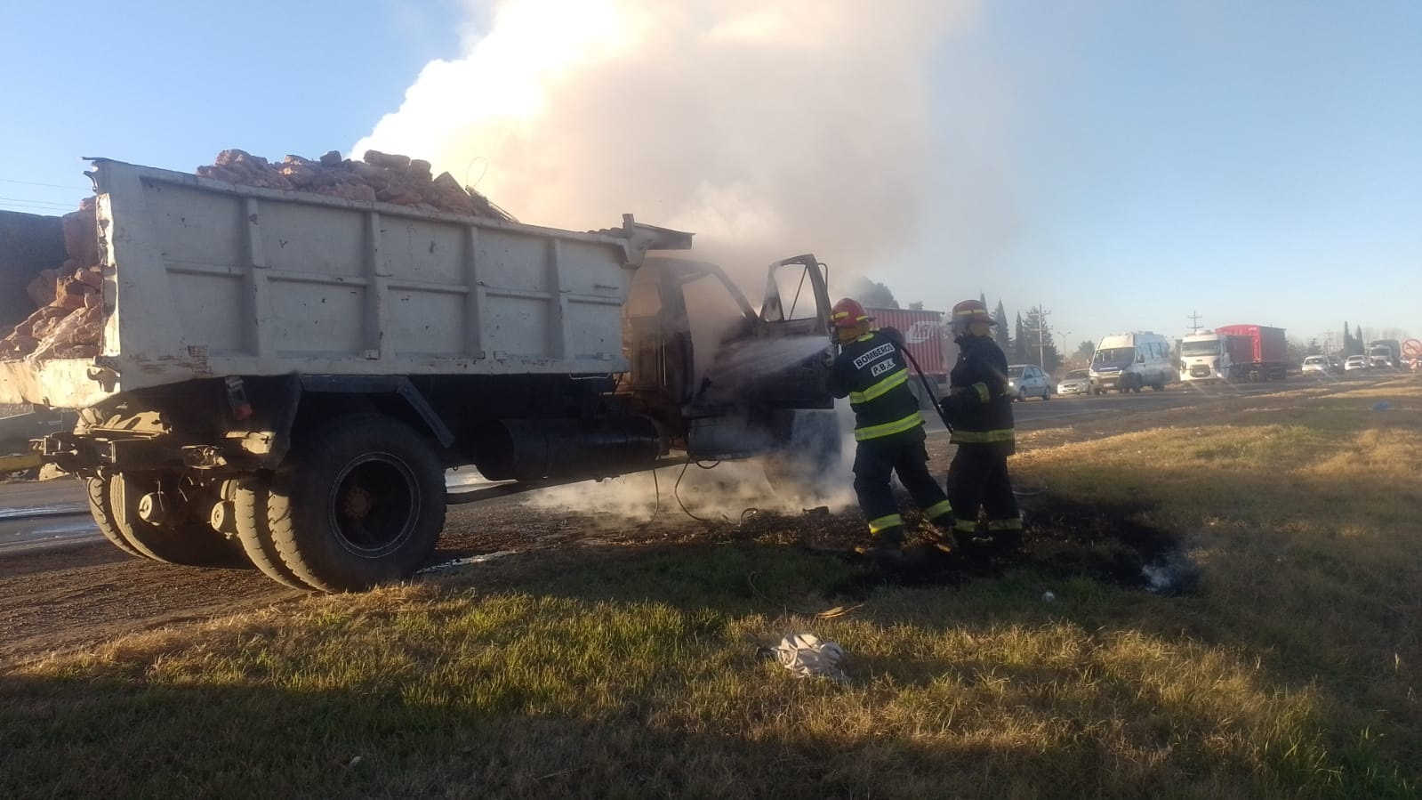 El hecho se produjo frente a la Unidad Penitenciaria local, sobre Ruta 188, cuando las llamas se apoderaron de gran parte de un camión Ford, conducido por Oscar Alcaraz.