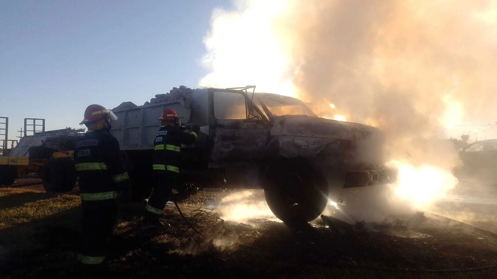 Una dotación del Destacamento de Bomberos debió acudir a un llamado recibido, por el incendio de un camión que transportaba materiales de construcción.