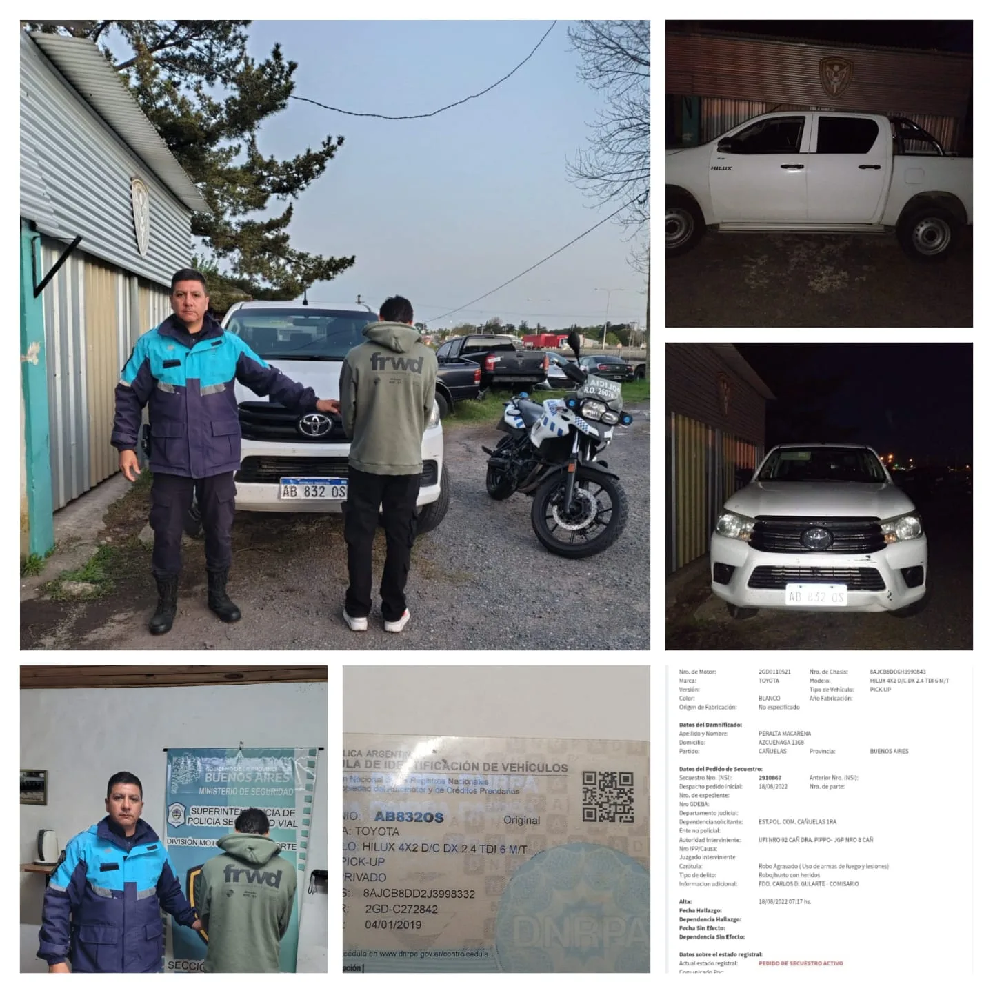 Cotejando el rodado se constató que el mismo poseía chapas patentes apócrifas, como así también la documentación, certificando por medio de VIN que el rodado tenía además pedido de secuestro activo por robo agravado solicitado por la UFI. Nro. 2 de Cañuelas.