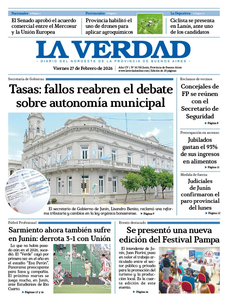 Diario La Verdad | Roque Sáenz Peña 167 Junín, Bs. As. Argentina | Tel: 54-236-4511559 © 2025 Registro de Propiedad Intelectual Nº 60606230 Edición Nº 2955. Director:​ Cdor. Fernando Ratto | Propietario:​ Arzobispado de Mercedes - Luján.