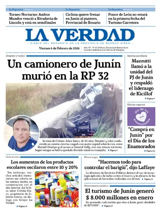 Diario La Verdad | Roque Sáenz Peña 167 Junín, Bs. As. Argentina | Tel: 54-236-4511559 © 2025 Registro de Propiedad Intelectual Nº 60606230 Edición Nº 2955. Director:​ Cdor. Fernando Ratto | Propietario:​ Arzobispado de Mercedes - Luján.